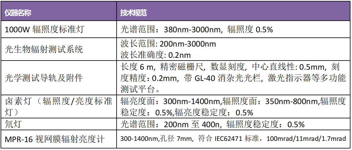 危害、視網膜藍光危害、視網膜熱危害、視網膜熱微弱危害。為評估燈和燈系統(tǒng)相關的光輻射危害,明確規(guī)定曝輻射限值,包括輻射照度,輻射亮度。根據測試數據對產品進行危害分級,包括豁免級,低危害,中等危害,高危害級別。