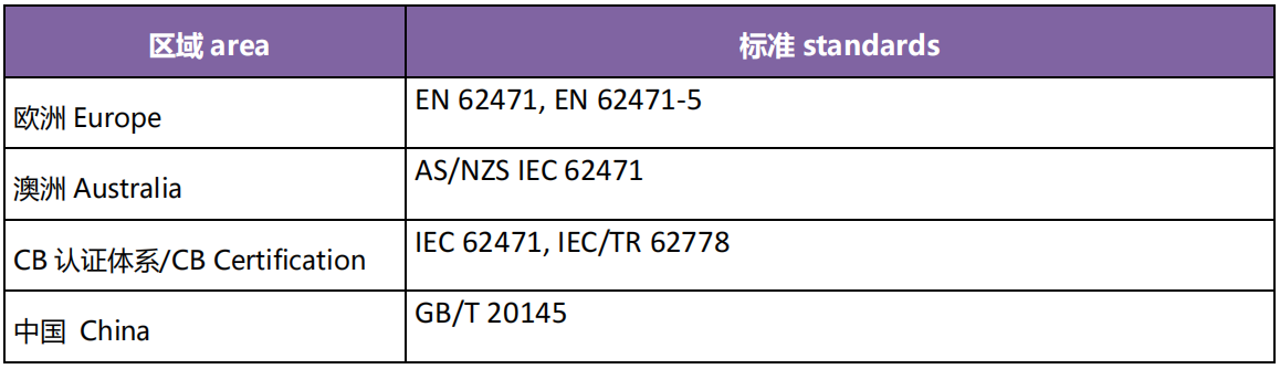 光生物安全、光化學紫外危害、小光源藍光危害、眼睛的近紫外危害、眼睛的紅外輻射危害、皮膚熱