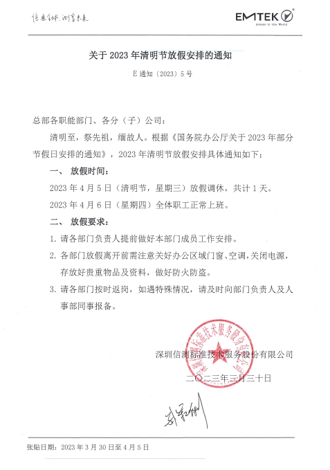 關(guān)于2023年清明節(jié)放假的通知