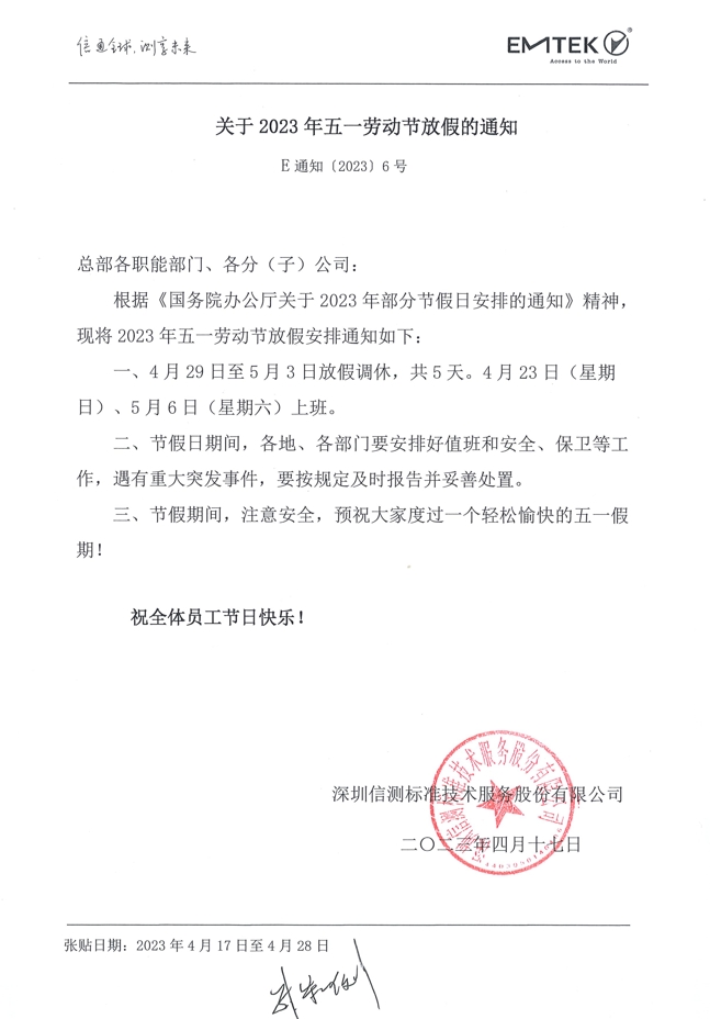 關(guān)于2023年五一勞動(dòng)節(jié)放假的通知