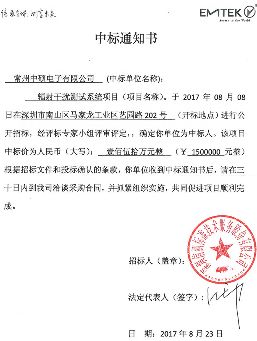 常州中碩中標(biāo)通知書