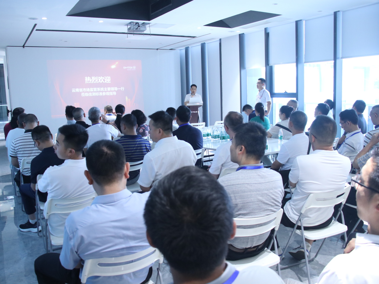 隨后,肖國中副總經(jīng)理向參觀人員一行就公司的發(fā)展情況、優(yōu)勢服務(wù)領(lǐng)域、獲得資質(zhì)認(rèn)可和實(shí)驗(yàn)室場所功能做詳細(xì)介紹。云南省市場監(jiān)管系統(tǒng)主要領(lǐng)導(dǎo)們充分肯定了信測標(biāo)準(zhǔn)在檢測認(rèn)證服務(wù)、推動(dòng)產(chǎn)品質(zhì)量提升中所付出的努力與取得的成績,雙方還就感興趣的問題進(jìn)行了交流互動(dòng)。