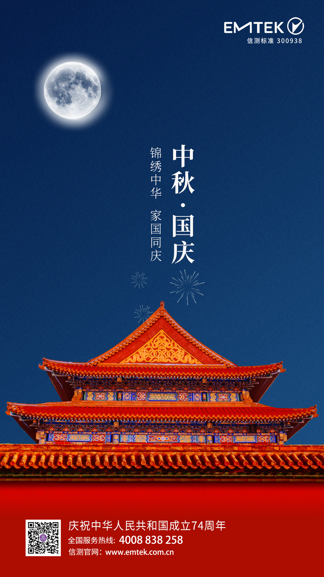 時值中秋國慶相逢喜慶之際,EMTEK信測標準衷心祝福偉大祖國繁榮昌盛,國泰民安!祝愿大家闔家團圓,幸福安康,節(jié)日快樂!