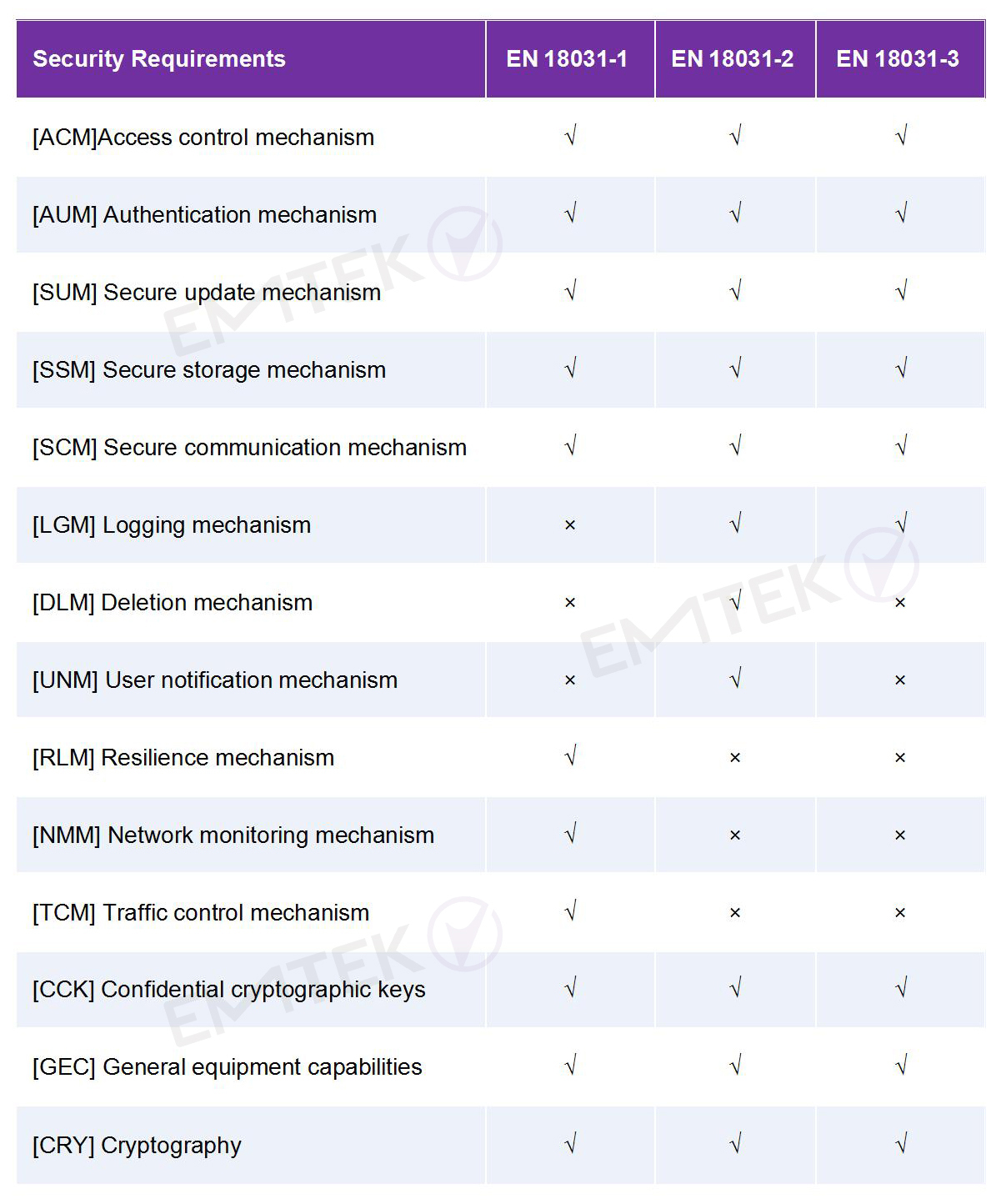 EN18031各子標(biāo)準(zhǔn)與安全需求對應(yīng)表