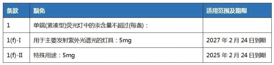 根據(jù)(EU) 2022/283,RoHS指令(2011/65/EU)附件III第4(b), 4(b)-I, 4 (b)-II和4(b)-III條被替代如下: