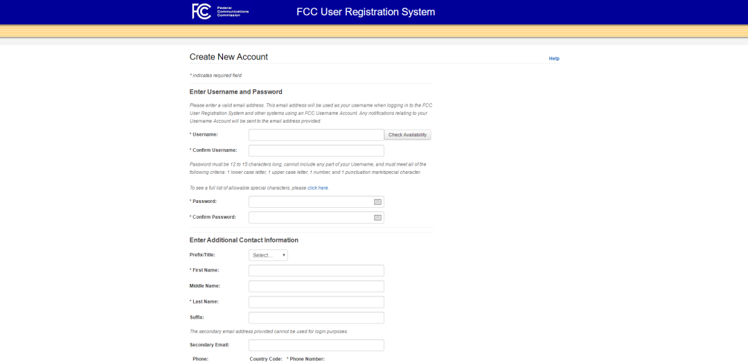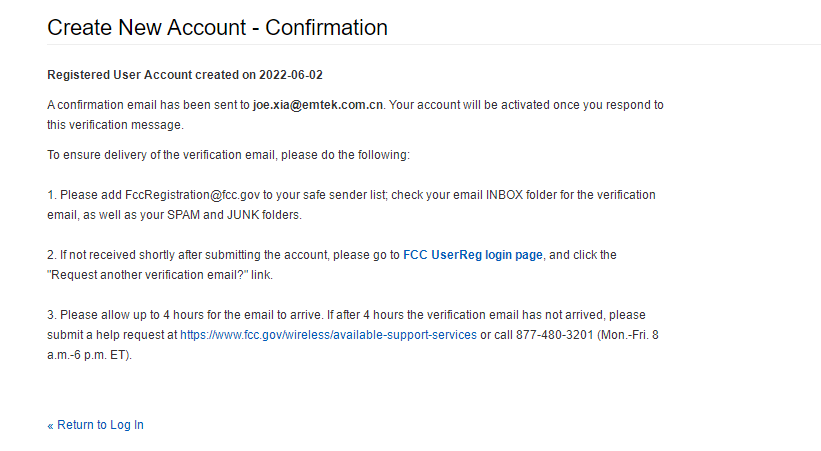 **請輸入有效的電子郵件地址。當您使用FCC用戶名帳戶登錄FCC用戶注冊系統(tǒng)和其他系統(tǒng)時,此電子郵件地址將用作您的用戶名。任何與您的用戶名帳戶相關的通知都將發(fā)送到您提供的電子郵件地址??梢詸z查郵件地址有效性。