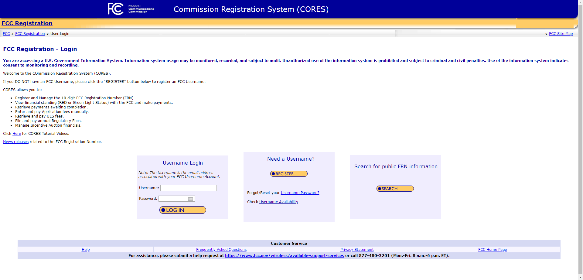 美國FCC發(fā)布DA 22-508號公告,將于2022年7月15日關閉舊的FRN注冊系統(tǒng)the legacy Commission Registration System(CORES),開始使用新版本的系統(tǒng)(CORES2)。差異主要在于新版本的系統(tǒng)要求用戶繳納年費。