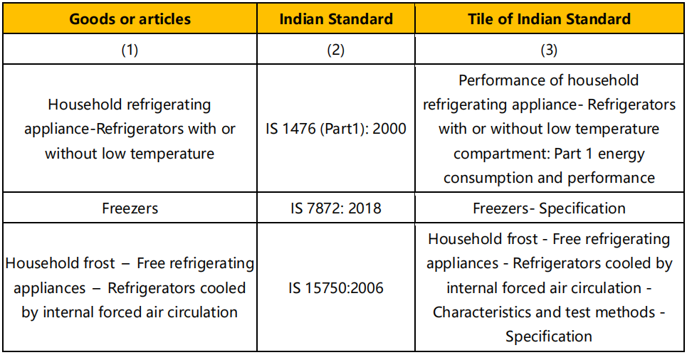 2022 年 12 月 14 日,印度標(biāo)準(zhǔn)局(BIS)發(fā)布公告,制冷設(shè)備強制安規(guī) ISI 認(rèn)證的實施時間再次推遲實施,下列產(chǎn)品的強制日期推遲到 2024 年 1 月 1 日。