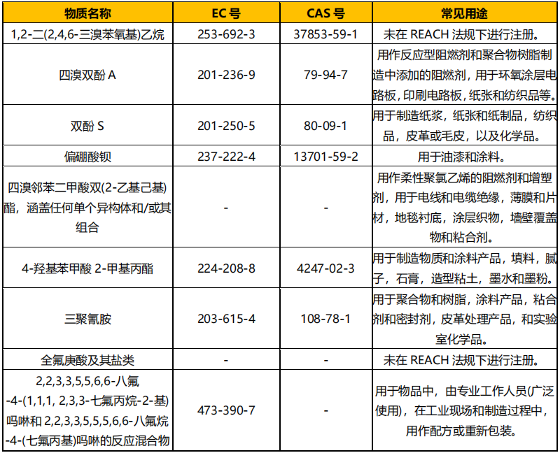 本次新增的 9 項高關(guān)注物質(zhì)詳細(xì)信息如下: