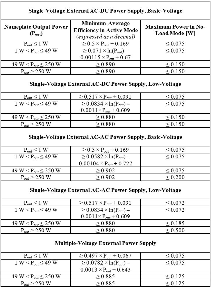 ? 所有在最終法規(guī)發(fā)布后2 年當(dāng)天或之后制造的外部電源,應(yīng)符合以下VII 級標(biāo)準(zhǔn);