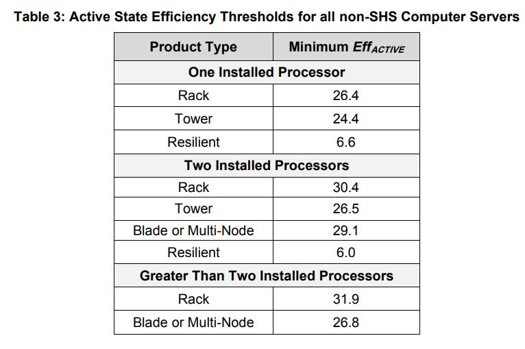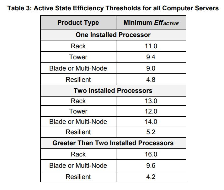 4.0 版本中對于非大容量服務(wù)器的活動狀態(tài)效率閾值要求: