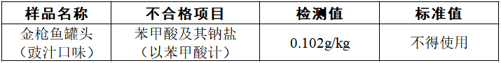 《食品安全國家標(biāo)準(zhǔn) 食品添加劑使用標(biāo)準(zhǔn)》(GB 2760—2014)中規(guī)定,苯甲酸及其鈉鹽(以苯甲酸計(jì))在水產(chǎn)動(dòng)物類罐頭中不得使用;《食品安全國家標(biāo)準(zhǔn) 食品添加劑使用標(biāo)準(zhǔn)》(GB 2760—2014)中規(guī)定,苯甲酸及其鈉鹽(以苯甲酸計(jì))在醬鹵肉制品中不得使用。