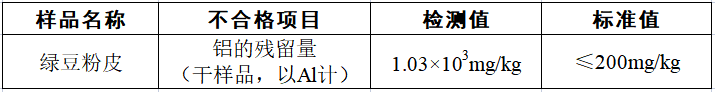 《食品安全國家標(biāo)準(zhǔn) 食品添加劑使用標(biāo)準(zhǔn)》(GB 2760—2014)中規(guī)定,粉絲、粉條中鋁的最大殘留限量值(干樣品,以Al計(jì))為200mg/kg。