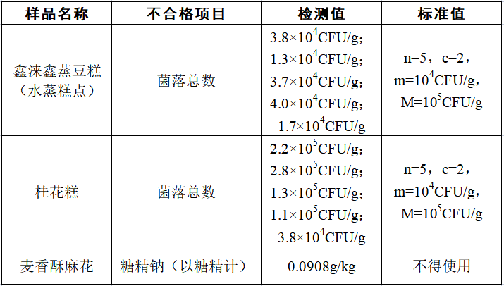 《食品安全國家標(biāo)準(zhǔn) 飲料》(GB 7101—2015)中規(guī)定,固體飲料同一批次產(chǎn)品5個(gè)樣品的菌落總數(shù)檢測(cè)結(jié)果均不得超過5×104CFU/g,且最多允許2個(gè)樣品的檢測(cè)結(jié)果超過103CFU/g;《食品安全國家標(biāo)準(zhǔn) 蜜餞》(GB 14884—2016)中規(guī)定,蜜餞同一批次產(chǎn)品5個(gè)樣品的菌落總數(shù)檢測(cè)結(jié)果均不得超過104CFU/g,且最多允許2個(gè)樣品的檢測(cè)結(jié)果超過103CFU/g;《食品安全國家標(biāo)準(zhǔn) 糕點(diǎn)》(GB 7099—2015)中規(guī)定,糕點(diǎn)同一批次產(chǎn)品5個(gè)樣品的菌落總數(shù)檢測(cè)結(jié)果均不得超過105CFU/g,且最多允許2個(gè)樣品的檢測(cè)結(jié)果超過104CFU/g。