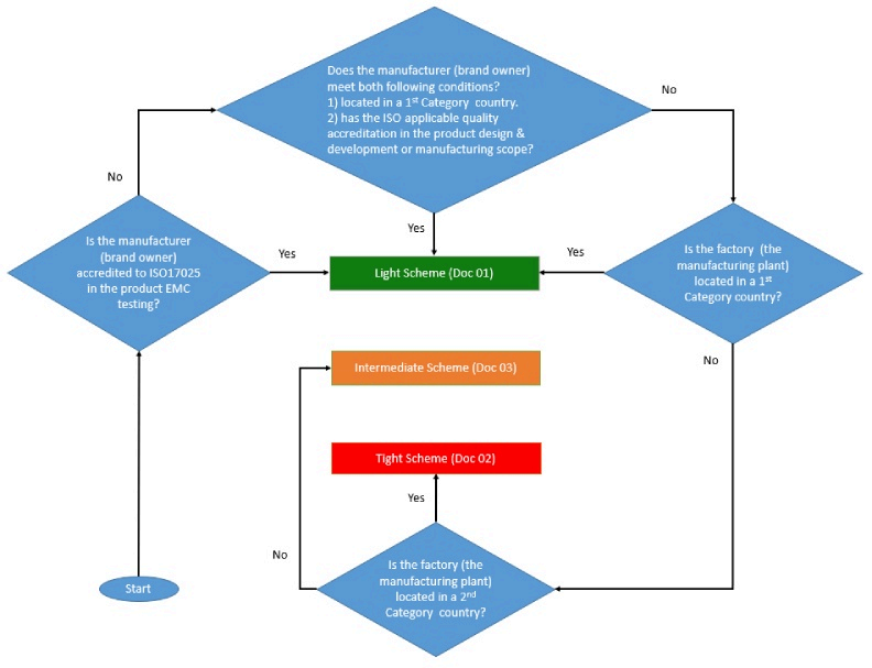 埃及國家電信管理局(NTRA)于2023 年 5 月底在TRA 官網(wǎng)更新了認(rèn)證模式及流程圖。NTRA 的認(rèn)證依據(jù)制造商來確定適用模式,針對品牌制造商所在下列地區(qū)分別適用NTRA 三種認(rèn)證模式:Light, Tight 及Intermediate Scheme。