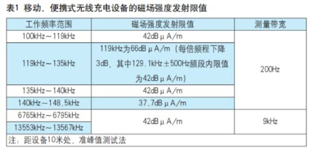 (3) 磁場(chǎng)強(qiáng)度發(fā)射限值需滿足表1 要求;