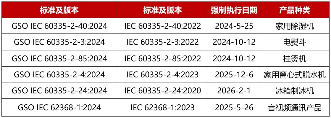 繼GSO 于2023 年 3 月26 日發(fā)布的有關(guān)推遲實(shí)施 IEC 60335-2-24:2020(第8 版)標(biāo)準(zhǔn)的公告,GSO 于2024 年3 月簽發(fā)了關(guān)于該標(biāo)準(zhǔn)采用的重要更新和澄清。GSO 已正式采用該標(biāo)準(zhǔn)為GSO IEC 60335-2-24:2024, 從2024年1月31 起生效。