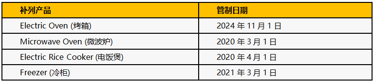 - 電視機(jī):將中長期能效標(biāo)準(zhǔn)的實施日期調(diào)整為2027年7月1日和2029年7月1日。