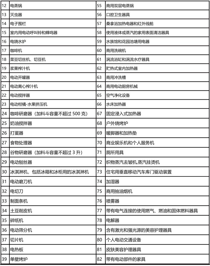 1. 該法令新增了 85 類電器產(chǎn)品,具體清單請看附錄表。