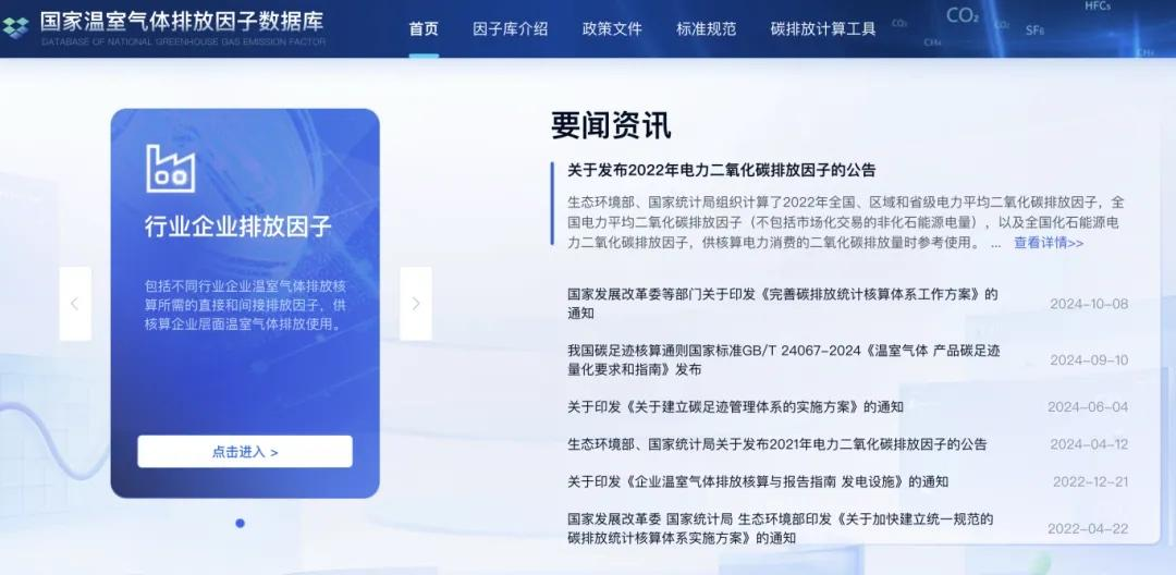 社會(huì)各界可登陸國(guó)家溫室氣體排放因子數(shù)據(jù)庫(kù)網(wǎng)站,查詢相關(guān)行業(yè)溫室氣體排放因子并參考使用。
