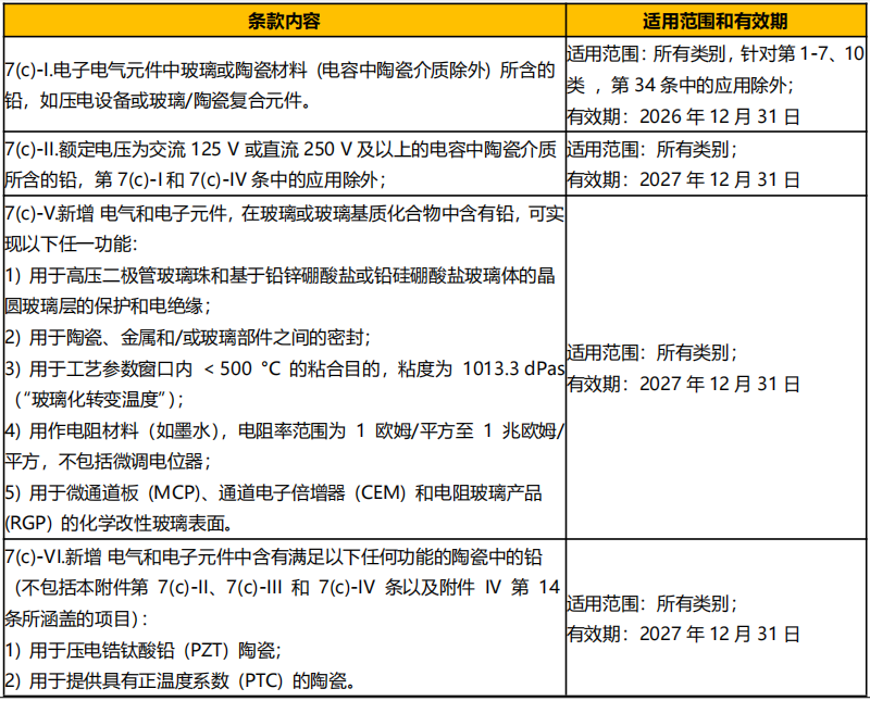 2025 年 1 月 6 日,歐盟向 WTO 提交G/TBT/N/EU/1102、G/TBT/N/EU/1103 和 G/TBT/N/EU/1104三項(xiàng)通知,涉及歐盟 RoHS 指令附件 III 中高頻使用豁免條款的修訂,包括 6(a)、6(a)-I、6(b)、6(b)-I、6(b)-II、6(c)、7(a)、7(c)-I 和 7(c)-II 關(guān)于鋼合金、鋁合金、銅合金、高熔化溫度型焊料、電氣電子元件玻璃陶瓷中的鉛等條款。