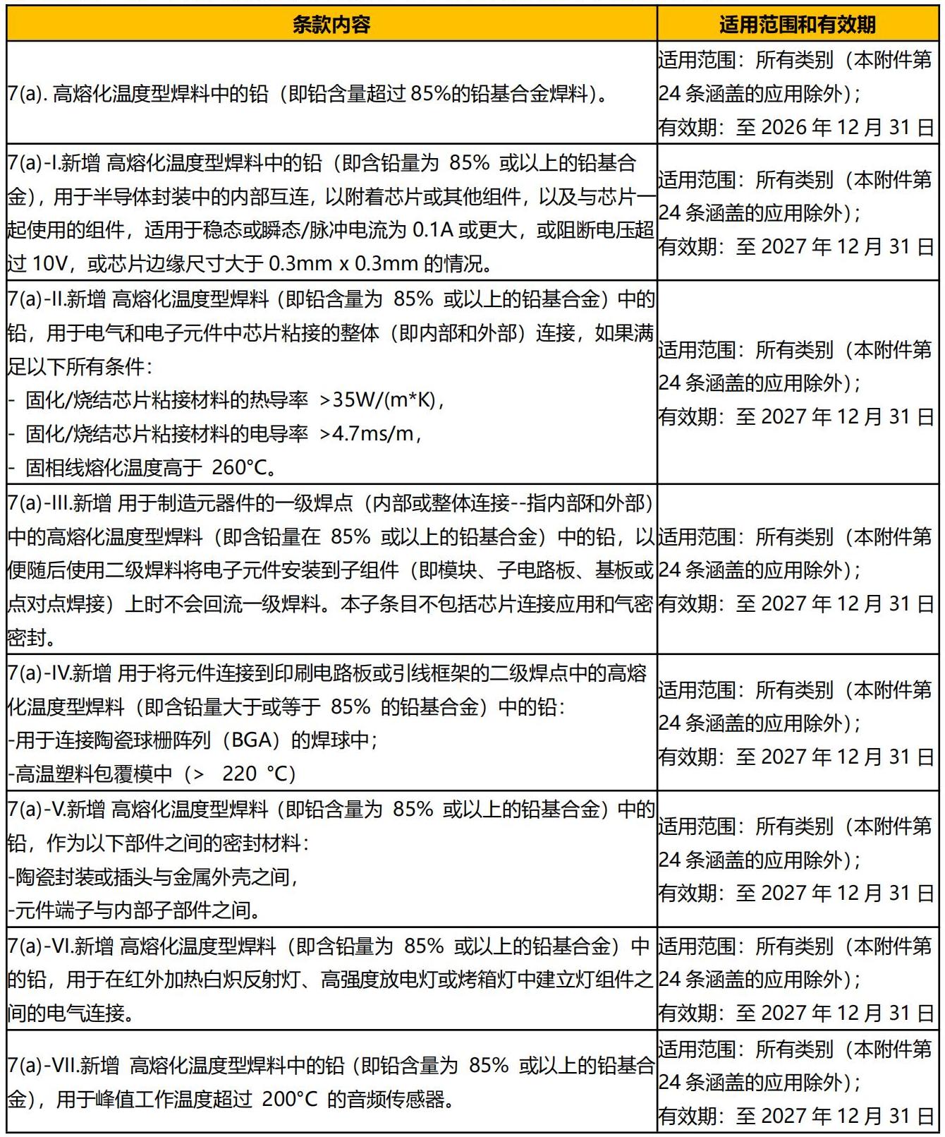 擬更新附件 III 第 7(a)項(xiàng)豁免條款,對(duì)高熔化溫度型焊料中的鉛的使用場(chǎng)景進(jìn)行了說(shuō)明。