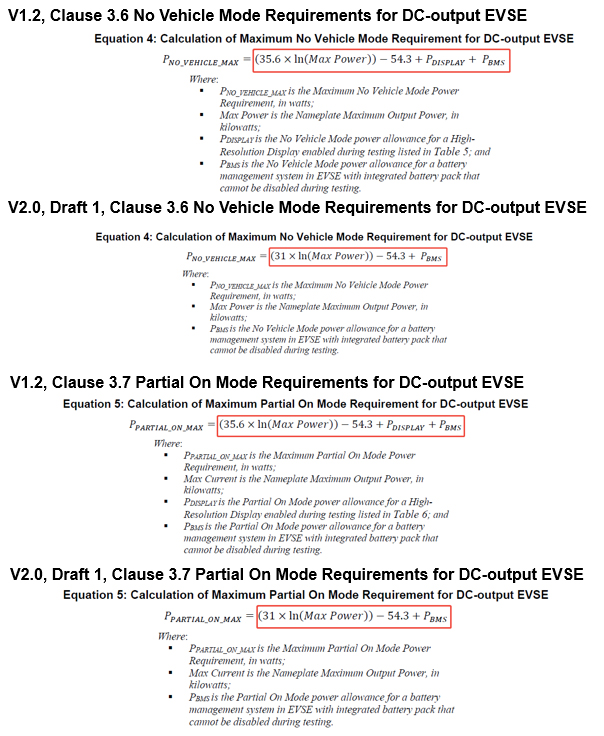 5、修改了DC充電樁在No Vehicle,Partial On模式下功率要求的計算公式,Max Power自然對數(shù)的倍數(shù)從35.6降為31,并去掉了顯示器的加權值(PDISPLAY)。