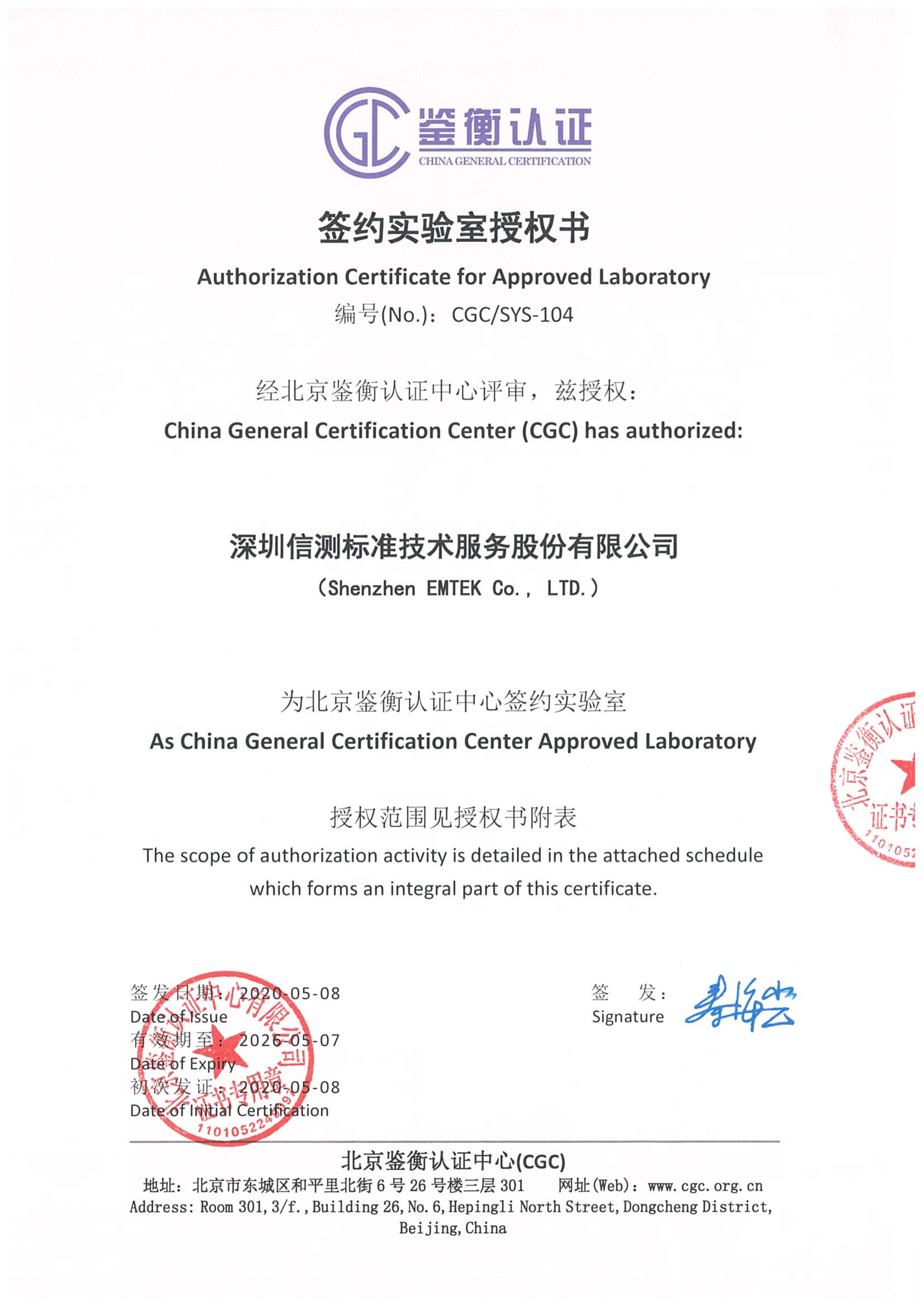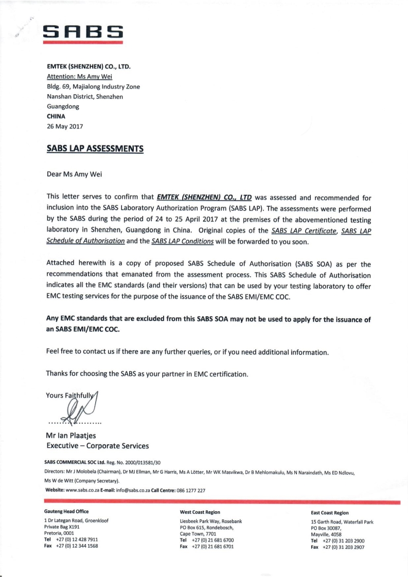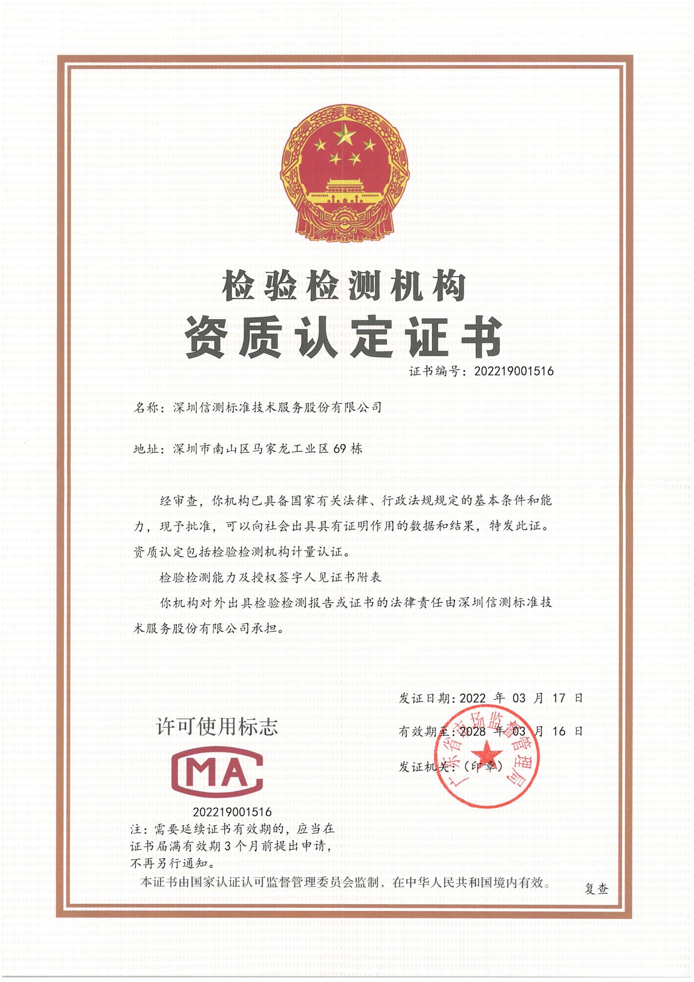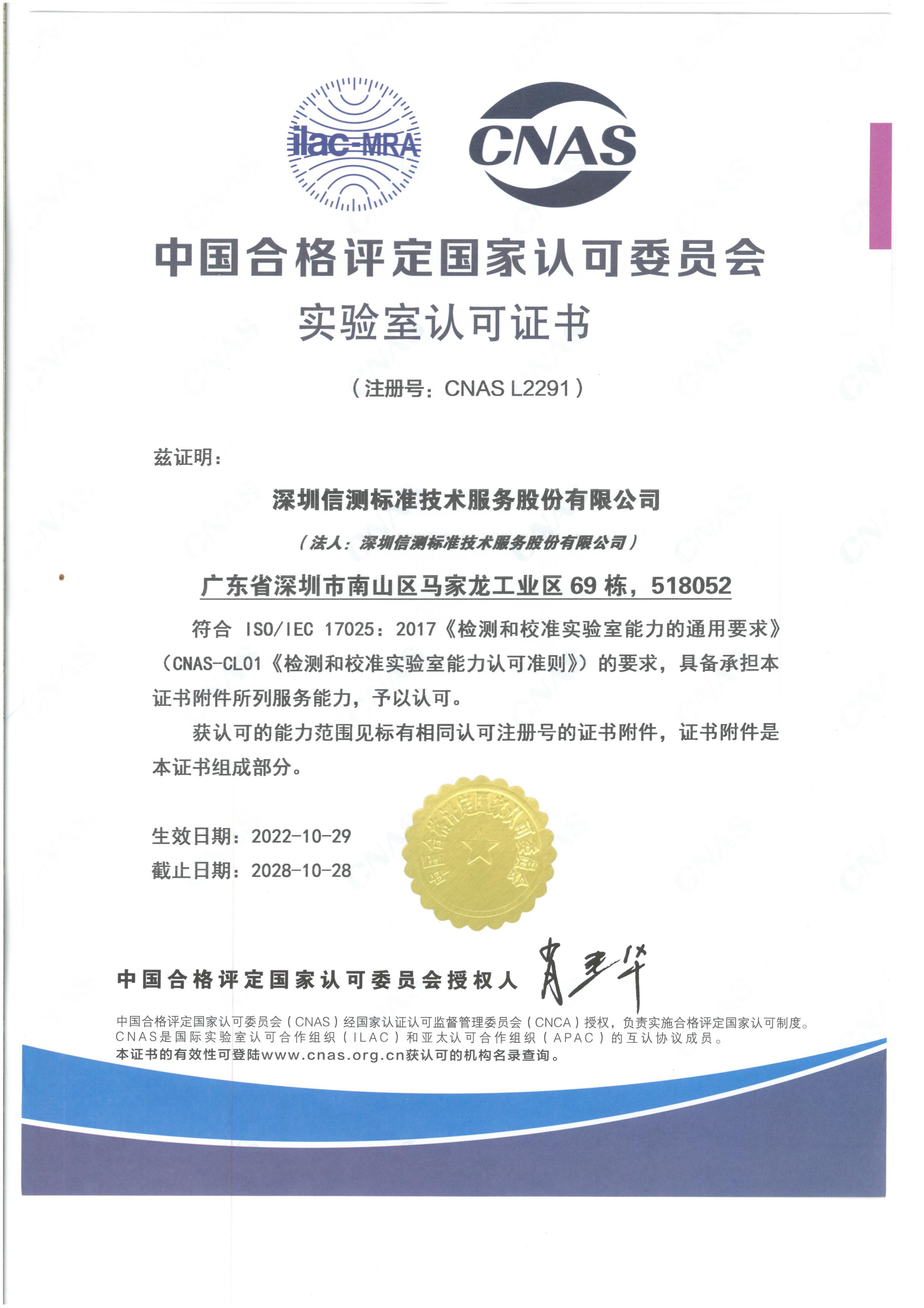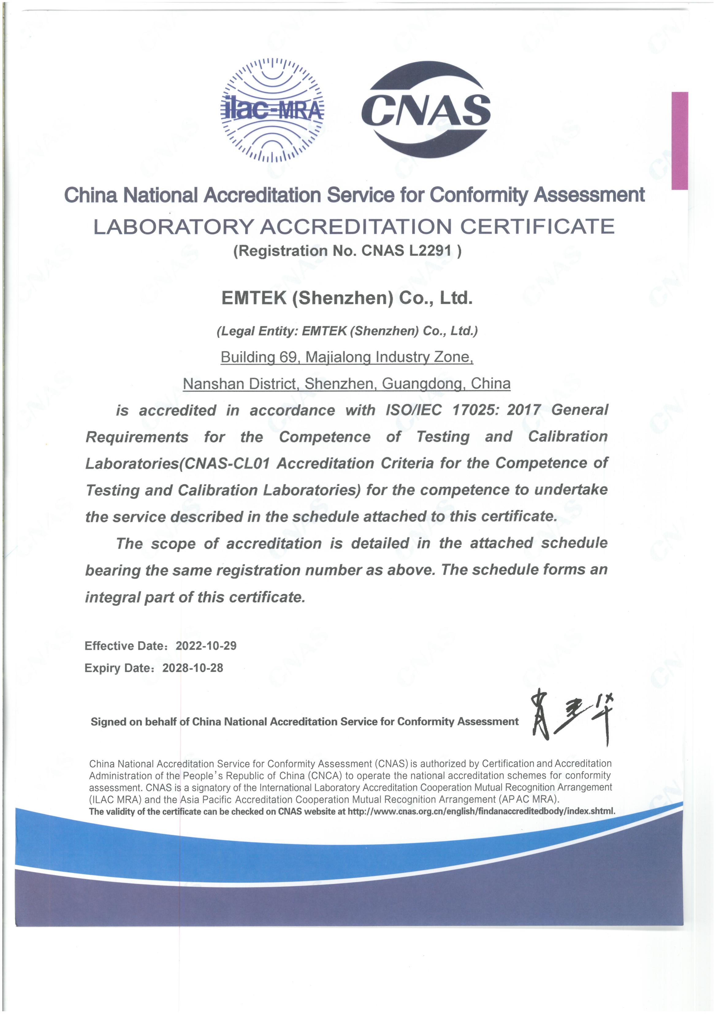 Qualifications of Dongguan Lab