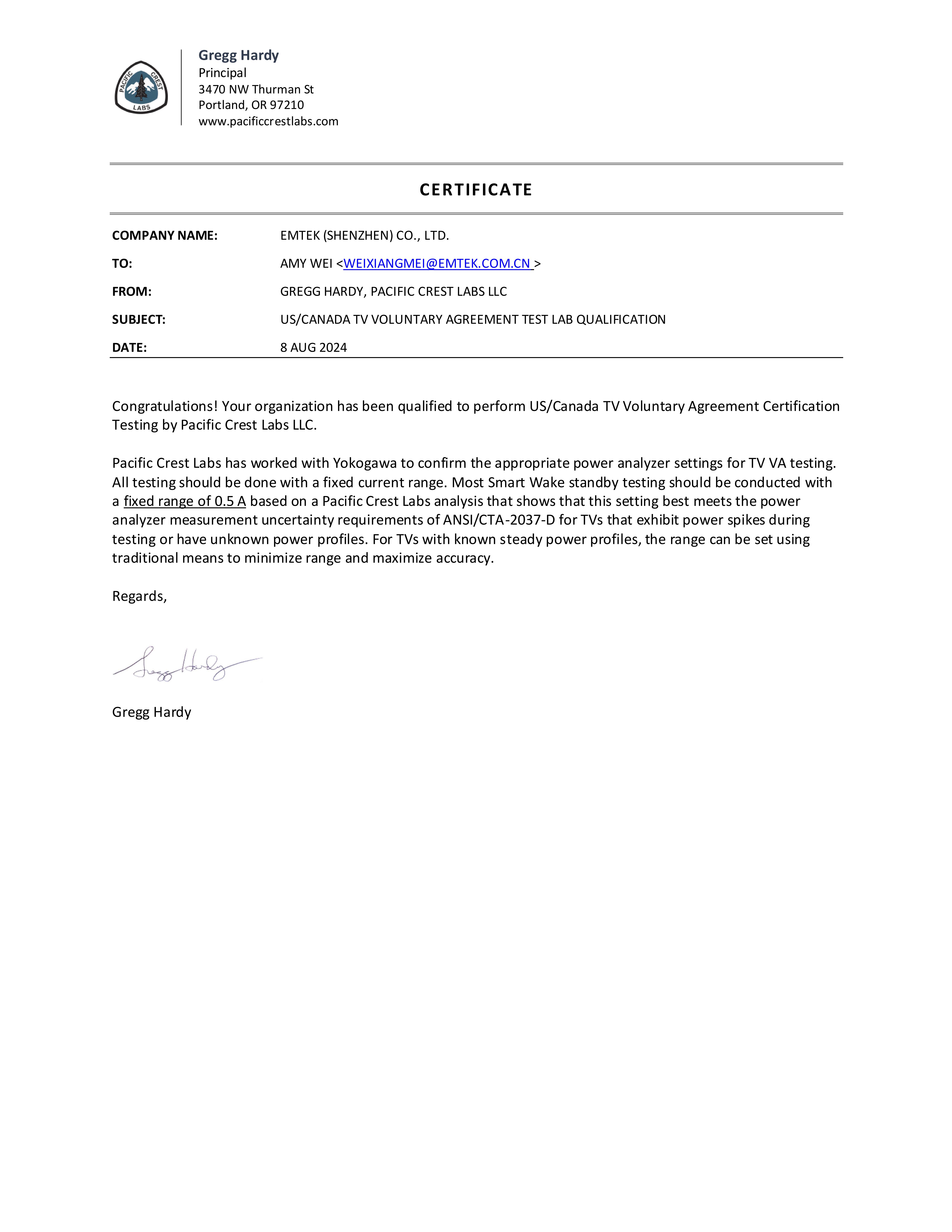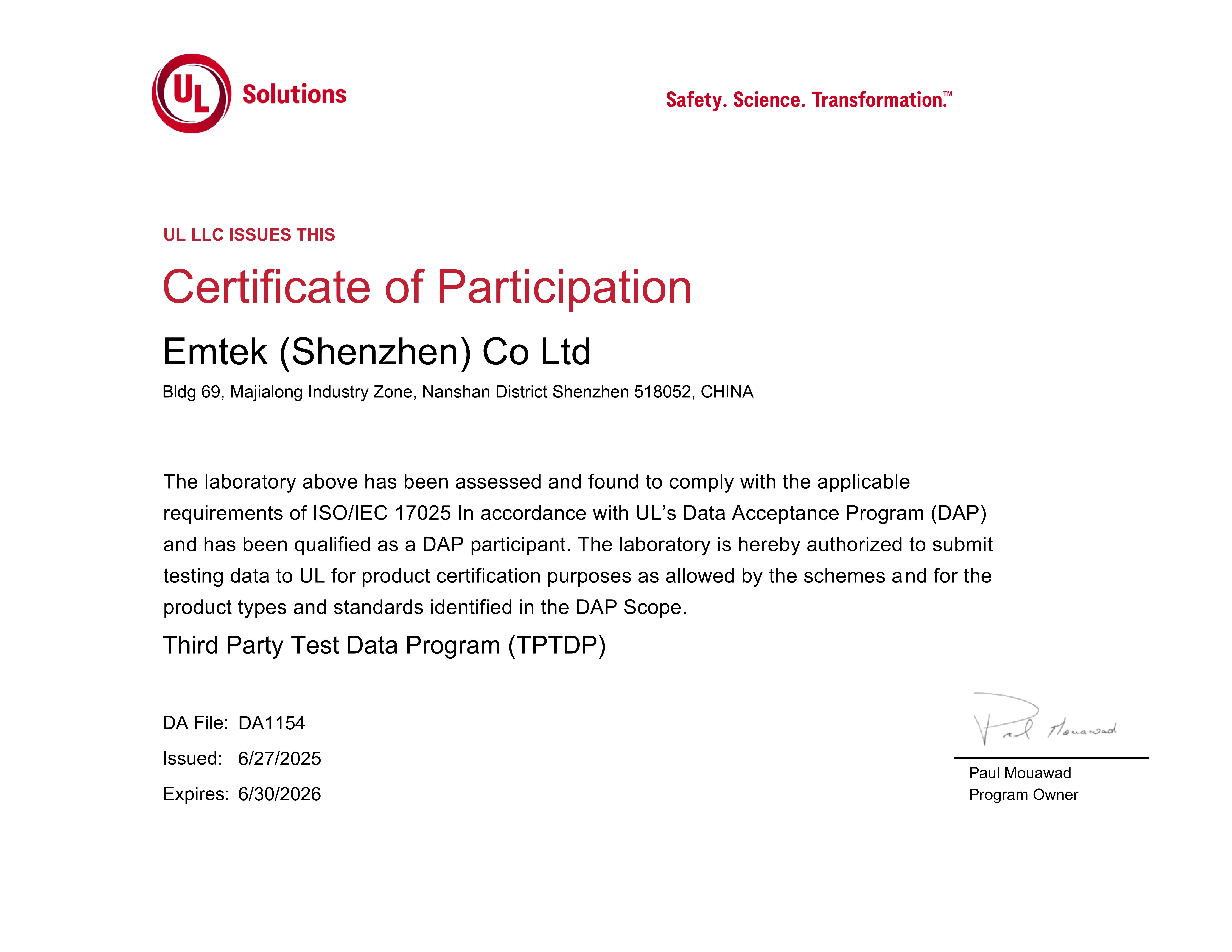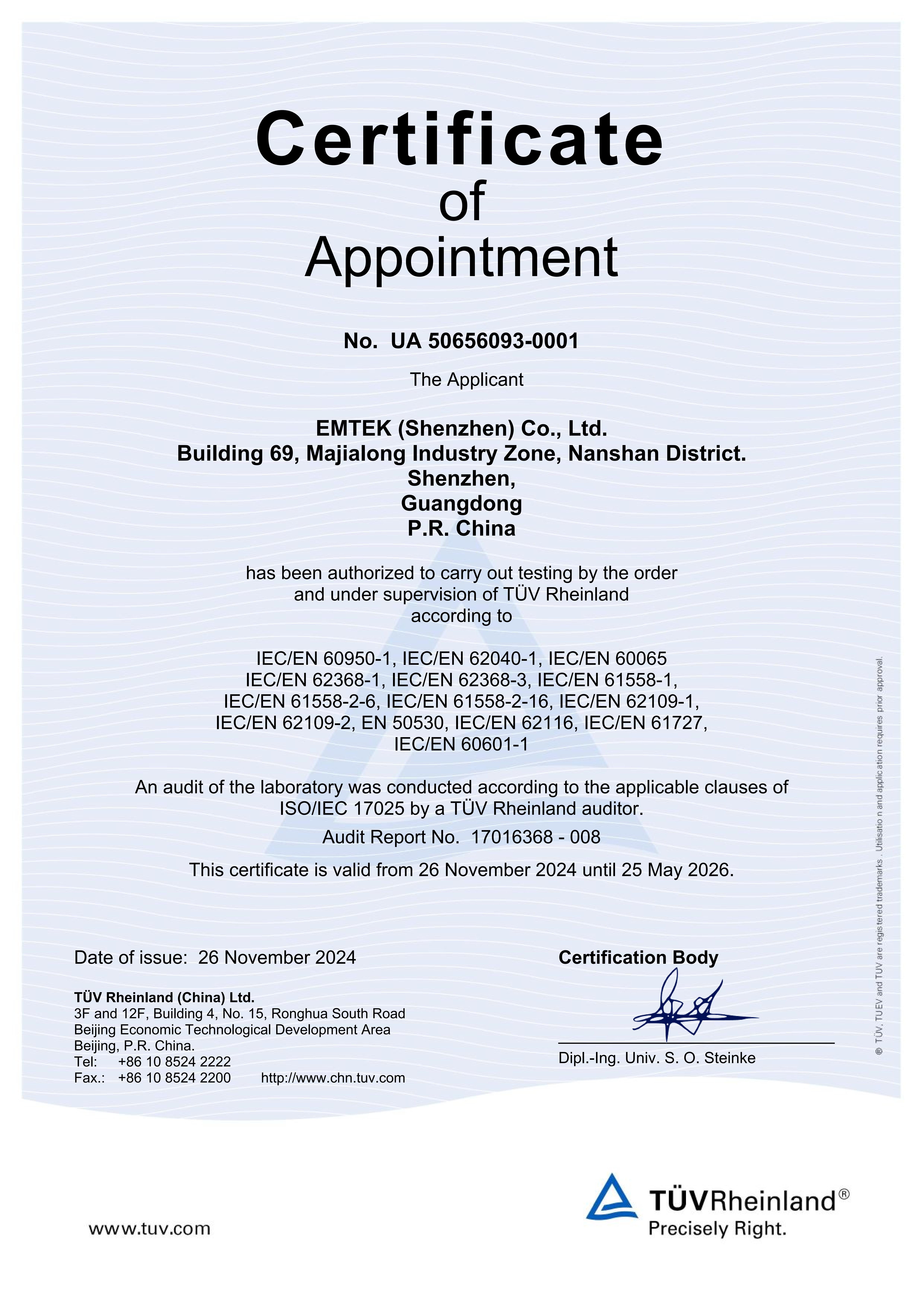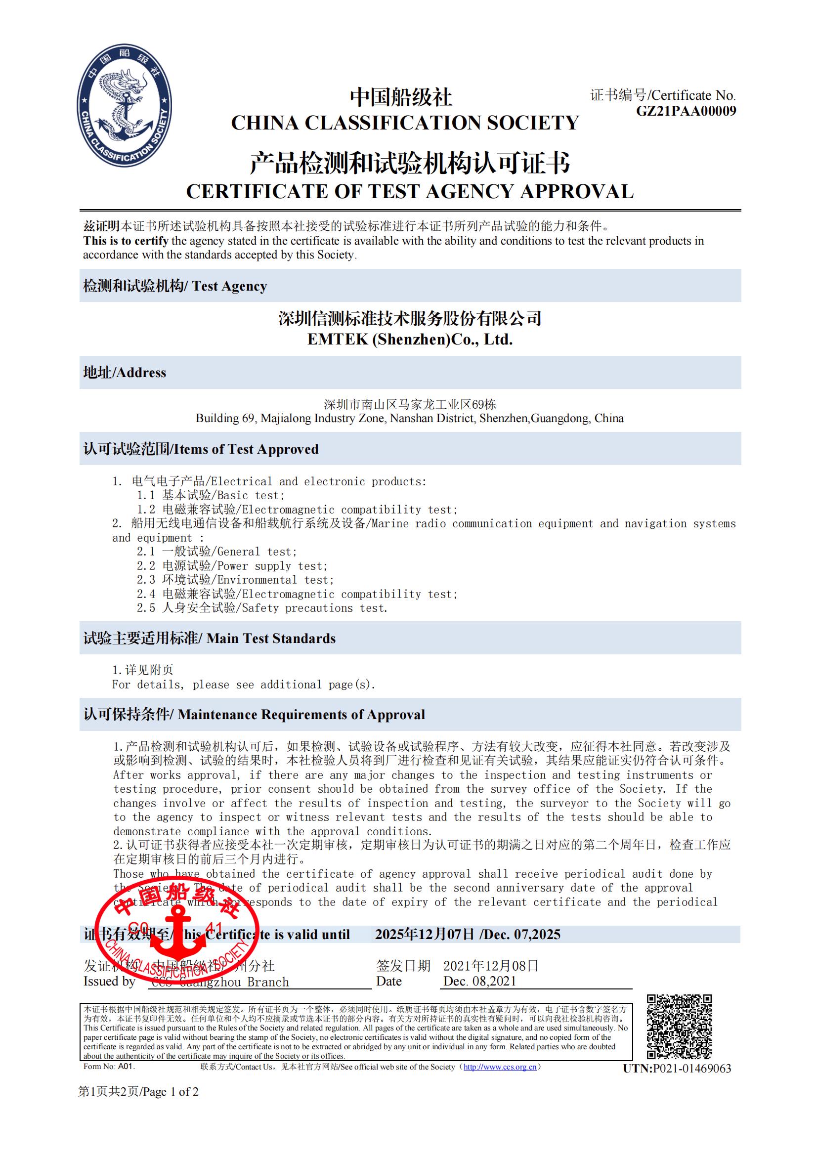 Qualifications of Dongguan Lab